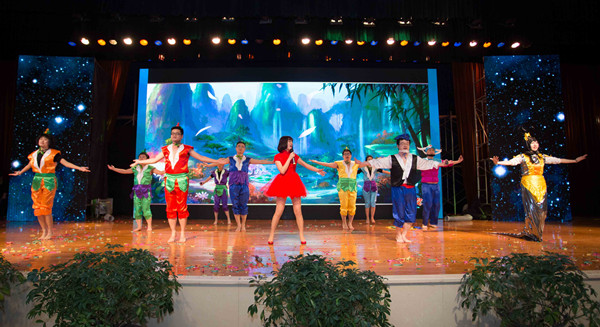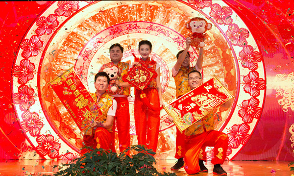 聯(lián)歡會(huì)在喜慶、熱鬧的舞蹈《扇舞吉祥》中拉開(kāi)序幕,員工自編自演的舞蹈、情景劇、小品、合唱等文藝節(jié)目先后上演,流行與古典兼收,溫情與火熱并舉。其中,北京地區(qū)選送的《新版葫蘆娃》將大家的記憶帶回了童年美好時(shí)光;重慶創(chuàng)新業(yè)務(wù)部自編自演的《X計(jì)劃》將信托業(yè)務(wù)巧妙地貫穿到小品情節(jié)中,貼近工作,妙趣橫生;綜合辦公室的《四寶鬧新春》以三句半的形式對(duì)各部門2015年工作亮點(diǎn)進(jìn)行了點(diǎn)評(píng)與總結(jié),在歡慶的同時(shí)為員工鼓勁,引起現(xiàn)場(chǎng)觀眾的共鳴,掌聲連連;《國(guó)投戀》、《待別離---新春的眷戀》、《陜國(guó)投贊歌》等配樂(lè)朗誦流露著陜國(guó)投人對(duì)公司深深的眷戀和為之奮斗的豪情;共青團(tuán)選送的舞蹈《shake it》和《good boy》充分展示了青年員工青春洋溢,活力四射;公司領(lǐng)導(dǎo)和財(cái)富管理總部員工共同歌唱《共筑中國(guó)夢(mèng)》,把晚會(huì)的氣氛推向了高潮。最后,舞臺(tái)大屏幕上出現(xiàn)了各部門拜年的視頻,聯(lián)歡會(huì)在和諧熱烈的氣氛中落幕。