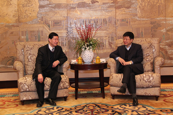 會(huì)前省金融辦主任楊勇和薛季民董事長(zhǎng)交談