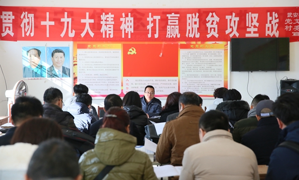 完成準備工作后,以支部為單位形成工作組迅速組織開展入戶調(diào)查及政策宣傳工作。武安村村組分布較為分散,幫扶人員在村民的帶領下走村串巷、深入調(diào)查走訪。一戶挨著一戶走、一家挨著一家談,詳細了解貧困戶家庭收入情況,認真調(diào)查產(chǎn)業(yè)幫扶項目、教育扶貧、異地搬遷、危房改造、醫(yī)療補助等各項措施是否落實到位,詢問“兩不愁”“三保障”的脫貧目標是否實現(xiàn),吸納貧困戶對幫扶工作的意見和建議,真正把精準扶貧做細做實。
