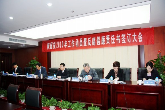 3月1日,公司召開了陜國投2010年工作動員暨反腐倡廉責任書簽訂大會。公司領(lǐng)導、西安地區(qū)全體員工參加了會議。會議由公司常務(wù)副總裁杜磊主持,黨委書記、董事長薛季民作了動員講話,并對全年工作進行了部署。