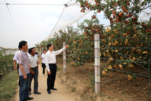 隨后,董事長薛季民一行調(diào)研了產(chǎn)業(yè)扶貧工作開展情況,現(xiàn)場考察了蘋果產(chǎn)業(yè)園電力設(shè)施配套及灌溉暗管鋪設(shè)情況,并計劃為貧困村打機井以解決缺水問題。