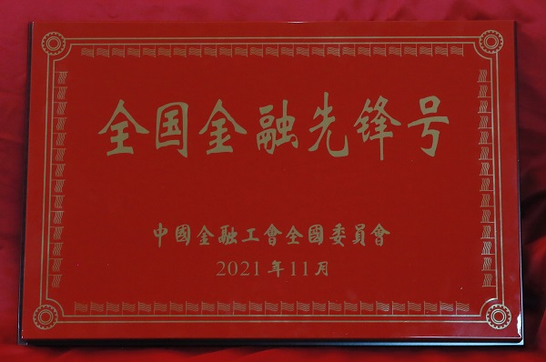 公司黨委副書記、總裁姚衛(wèi)東代表公司接受“全國(guó)金融先鋒號(hào)”榮譽(yù)獎(jiǎng)牌。