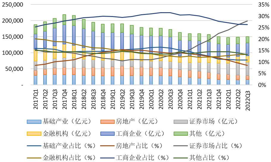 1.投向證券市場、金融機(jī)構(gòu)的規(guī)模和占比持續(xù)提升。截至2022年3季度末,投向證券市場的資金信托規(guī)模為4.18萬億元,同比增長1.12萬億元,增幅36.80%,環(huán)比增長7.40%;較2021年末規(guī)模增長24.59%;占比提高到27.85%,同比上升8.35個(gè)百分點(diǎn),環(huán)比上升1.64個(gè)百分點(diǎn)。當(dāng)前社會(huì)理財(cái)資金配置由非標(biāo)類資產(chǎn)向標(biāo)準(zhǔn)化資產(chǎn)轉(zhuǎn)移的趨勢明顯,信托業(yè)在證券投資領(lǐng)域與基金、券商、銀行理財(cái)?shù)荣Y管同業(yè)相比,仍然規(guī)模較小,參與深度有限,但加快做強(qiáng)做優(yōu)做大證券市場類信托業(yè)務(wù)已基本成為行業(yè)轉(zhuǎn)型共識(shí)。二是投向金融機(jī)構(gòu)的資金信托規(guī)模為2萬億元,同比增長0.10萬億元,增幅5.32%,環(huán)比增長2.40%;較2021年末規(guī)模增長7.14%;占比上升至13.32%,同比上升1.21個(gè)百分點(diǎn),環(huán)比上升0.17個(gè)百分點(diǎn)。