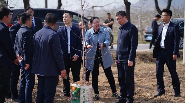 解志炯深入田間地頭和村街小巷、村委會(huì)大院,詳細(xì)查看了近年來公司在武安村修筑的深井和飲水、灌溉、電力工程,了解公司去年支持建設(shè)的蘋果高接換種示范園、果蔬雜糧冷庫和近期正在建設(shè)的高標(biāo)準(zhǔn)蘋果矮化示范園情況,檢查今年春季公司支持在三條村巷道路栽植的高桿月季,參觀了修繕一新的村委會(huì)辦公條件、群眾劇臺(tái)、幸福院等項(xiàng)目,與鎮(zhèn)、村干部和駐村工作隊(duì)座談研究深入推進(jìn)幫扶工作。